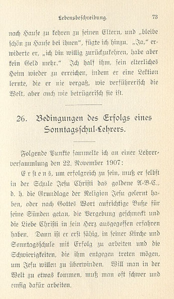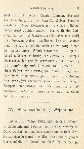 in this white apron and my beloved wife lying on the operating table. Oh, dear God, help us in this difficult circumstance. "Wife, listen to me. We shall search everything again very carefully," I said. "I've already thoroughly searched the bed itself and underneath it twice, " she said. To this I replied "We'll move the bed farther out." She answered, "It's all for nothing, dear husband," and she could say nothing more. But I didn't let that deter me. When the bed was pushed to one side, behold, there lay the searched-for teeth under the bed to our surprise and delight. If someone had sent us a thousand dollars we wouldn't have been happier or more content. How wondrous and mysterious are the workings of God! Indeed he went into hell; that is, through the valley of darkness, and then in an unexplainable way he imperiously came out.