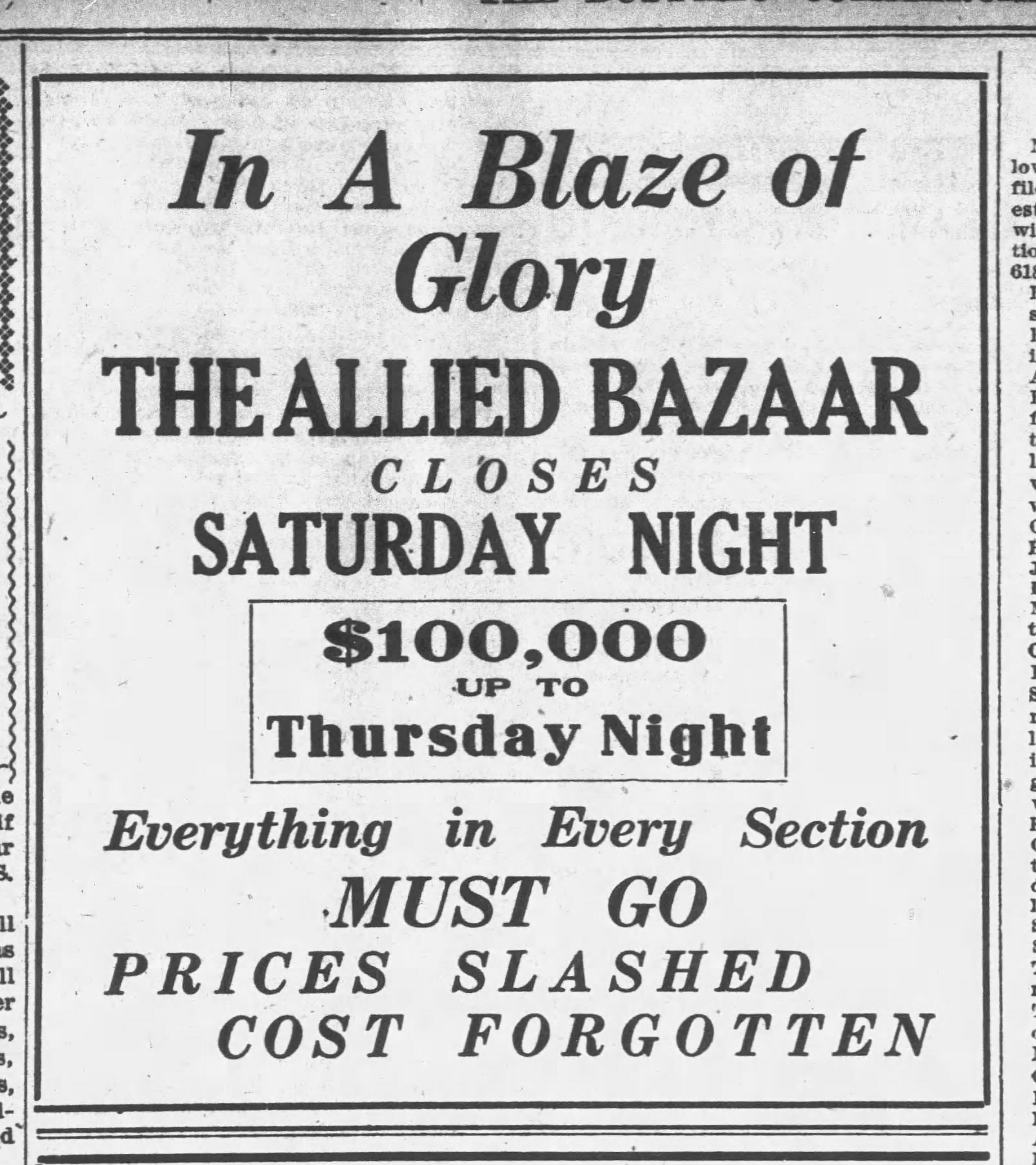 Glory THE ALLIED BAZAAR CLOSES SATURDAY NIGHT $100,000