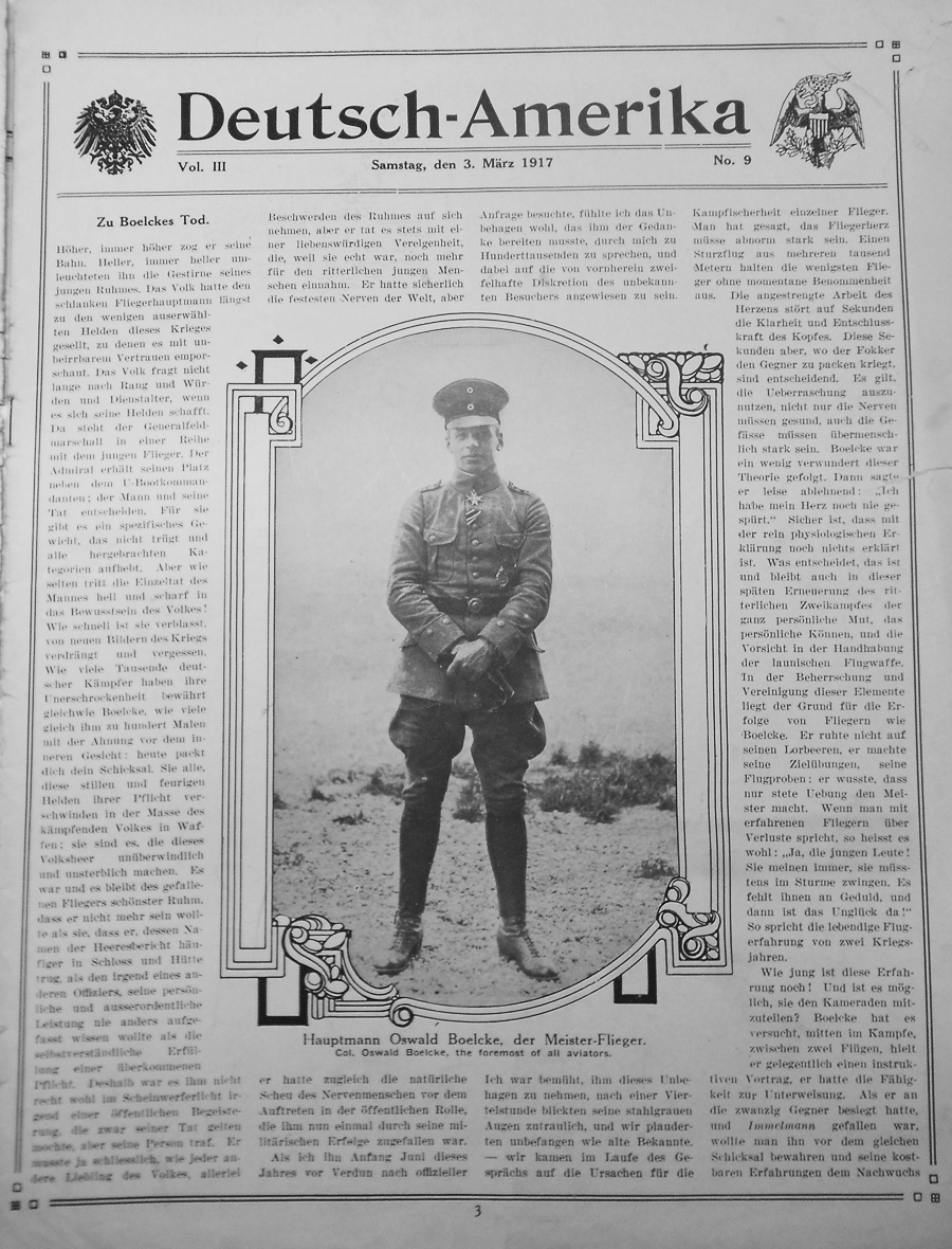 Deutsch-Amerika v.3 no. 9, March 3, 1917 : Aviator Special Issue Caption: A German Flight Officer (according to a painting by Erich Godbersen) |