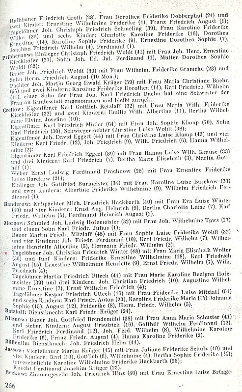 Fiddechow: invalid August Friedrich Höpfner (49), Mrs. Sophie Zobel (48) and seven children: Henriette Friderike (23), Friedrich Wilhelm (16), Karoline Friderike (14), Karoline Albertine (13), Johanna (12), Wilhelmine (8), Karl Friedrich (7);