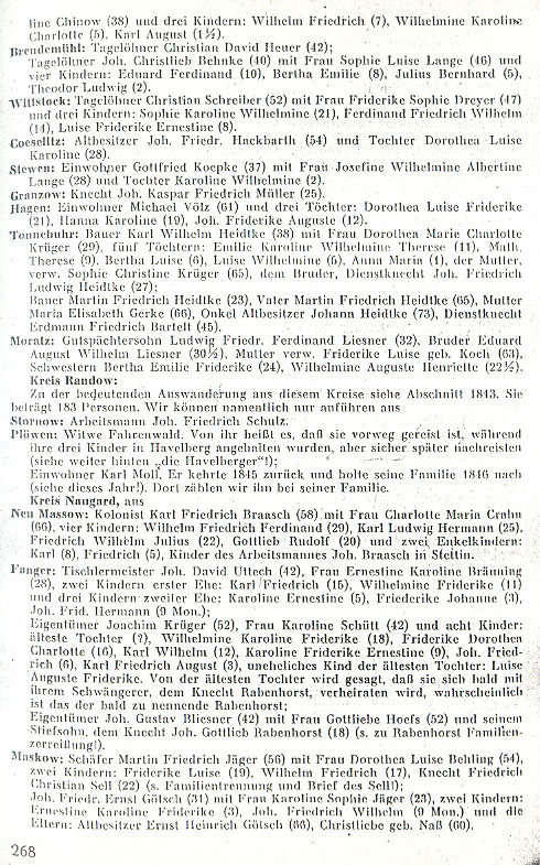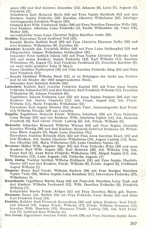 Gansken Pribbernow: former cottager Joh. David Kollath (37) with Mrs. Christ. Wilh. Friderike Friede (35) and four children: Hanna Karoline Frid. (11), Joh. Ferd. Hermann (8), Karl Albert Julius (5), Hermann Friedrich (2);