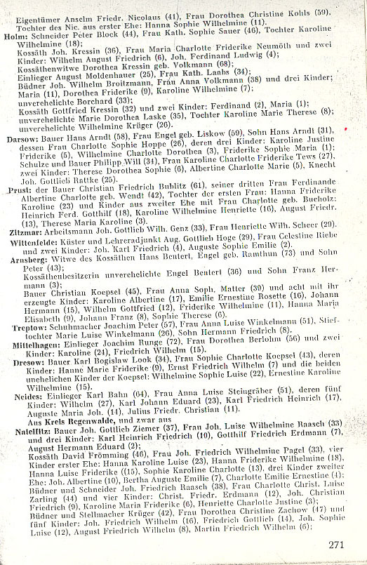 Warnow: farmer Ludwig Wergien (42), Mrs. Engel Dorothea Berndt (40), her father, old estate owner Joachim Berndt and six children: Karl Friedrich Wilhelm (15), Johanna Friderike (12), Joh. Regine (9), Luise Friderike (6), Christine Karoline (3), Ludwig (1);