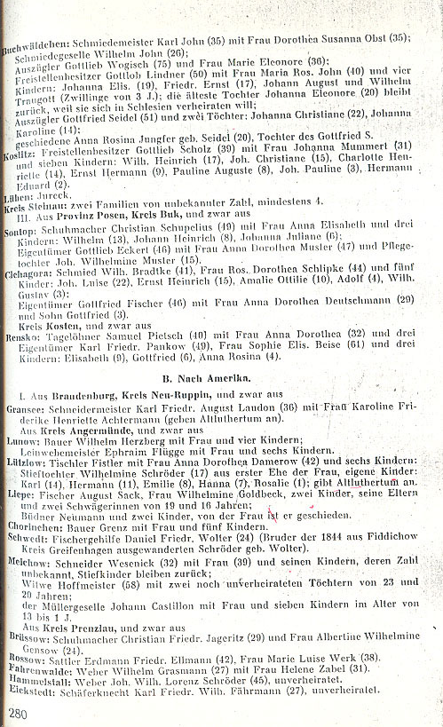 Letschin: Katharine Moldenhauer, neé Bocho. She follows her daughter, Sophie, who emigrated in 1843 with her husband, the tailor Pankow. The father, colonist Heinrich Moldenhauer, either died or remained behind;