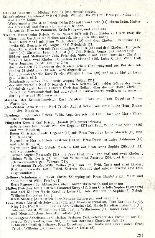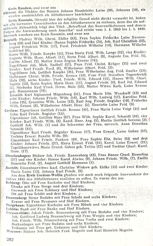 From Usedom-Wollin district we believe that the following emigrants for the year 1845 may be counted among the old Lutherans.