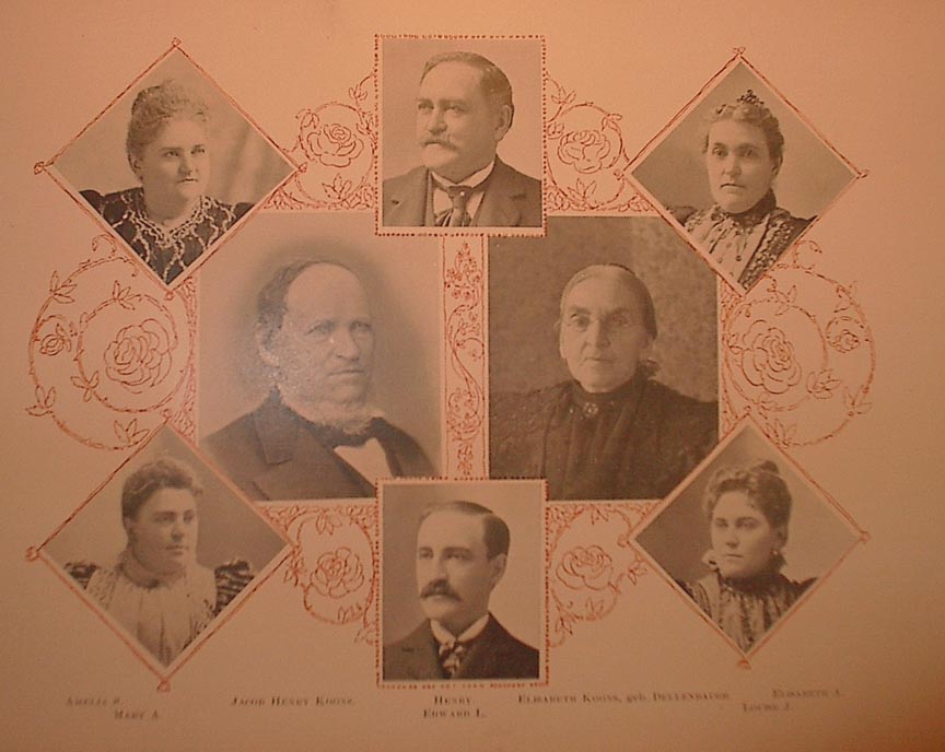 Jacob Henry Koons was one of the most successful German settlers to come to Buffalo in the 1830s. He was born in Alsatia in 1806, attended school there, and emigrated to America in 1828. He worked for many months on a farm in the vicinity of Guilderland, Albany County, N.Y. but then established an emporium * with his compatriot, F.J. Handel. The friends, who had left Alsatia together, operated this business until 1832.They then came to Buffalo and opened a small store on Main Street near Genesee. They sold specialty items or notions such as watches. Since Mr. Koons and his partner were capable businessmen, they were able to move forward and later establish a branch store in Paris, Ohio.