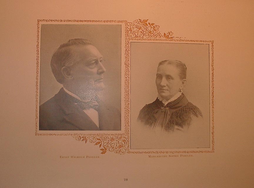 was born on December 2, 1820 in Leer, East Friesland, Hannover. He acquired his first schooling in the elementary and business schools in his home district. After graduation he attended the higher elementary school in order to become a teacher. In 1838 he became school teacher and organist in Leer, positions he held until 1851, in which year he emigrated to America. He arrived on June 18th. He immediately became the teacher and organist for the town of Lebanon, Wisconsin, an area of pure, primal forests. In May 1853 he came to Buffalo and lived here ever after. He had to earn his living with his hands through physical labor, stenuous and difficult. He shunned nothing in order to lend a hand to those in need. In 1855 he was able to return to his profession. He took a position as teacher and organist at St. Peter's School at the corner of Genesee and Hickory Streets. He stayed there until 1867. From 1855 to 1873 he was also organist for Pastor Vogt's French Protestant Church at the corner of Ellicott and Tupper Streets. From 1867 to 1890 Mr. Peseler owned a dry goods business at 382 Genesee Street. He started it with surplus capital. It was just after the war and times were tough, so in 1869 he built a private school, which he operated until 1876. He considered the young people he chose to be from the best German families. They wanted to expand their knowledge.