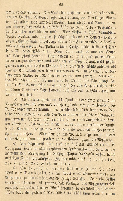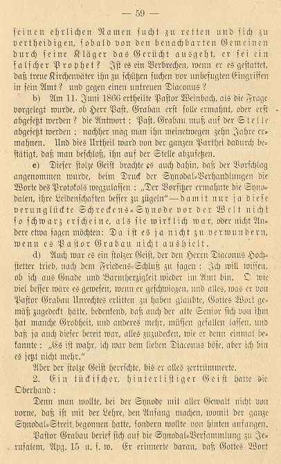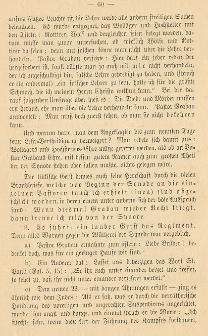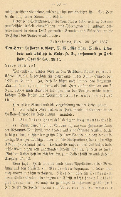 Concerning this same horrifying synod I wish to add the impartial judgment of an eye and ear witness, as it was stated in a letter of warning, printed in 1867, to the persecutors of Pastor Grabau: