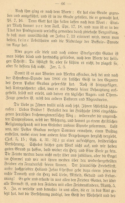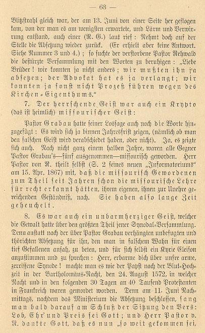 9. And finally at this travesty of a synod there reigned a blind, stubborn spirit. It may here be recognized that Pastor Grabau's adversaries did not heed the laws of God, which soon afterwards beset and pursued them.