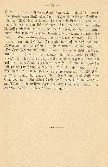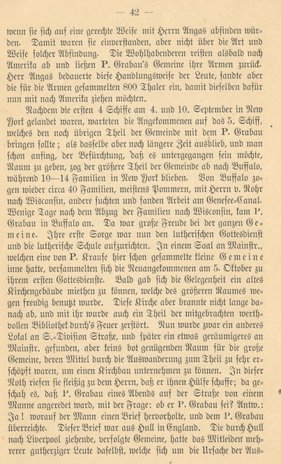 On Friday, June 28th at 2 PM the first transport of Lutheran Christians began via steamship over to Hull and then Liverpool. The second and 3rd group went on June 30th. The 4th group went on July 4th and the 5th on July 27th. Pastor Grabau and his family were on the last ship. From Liverpool the congregation was transported on 5 sailing ship to New York. Once again Pastor Grabau was on the last ship, which departed on August 14th. By this time the first ship had already landed in New York. The first half of the journey proceeded peacefully but during the second half there was a terrible storm. The sails ripped, the masts broke and no one could turn the rudder. Despite the pastor's warning one of the two helmsmen and a few of the sailors were given brandy