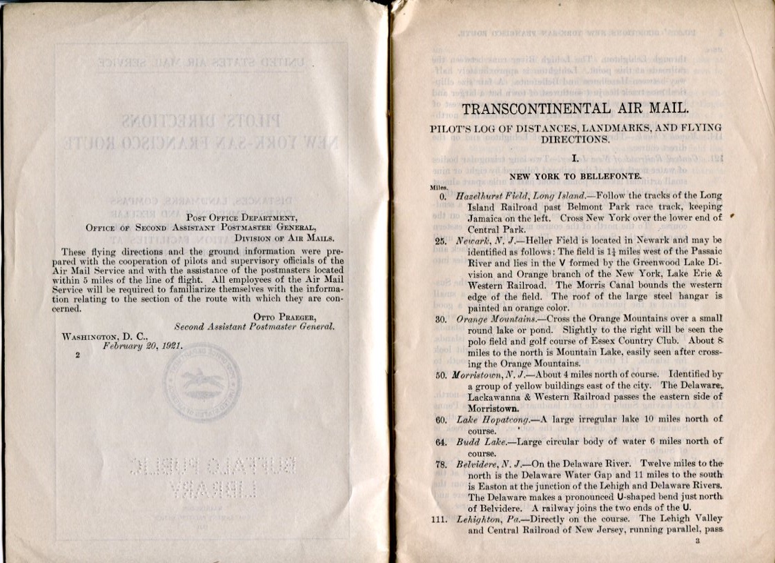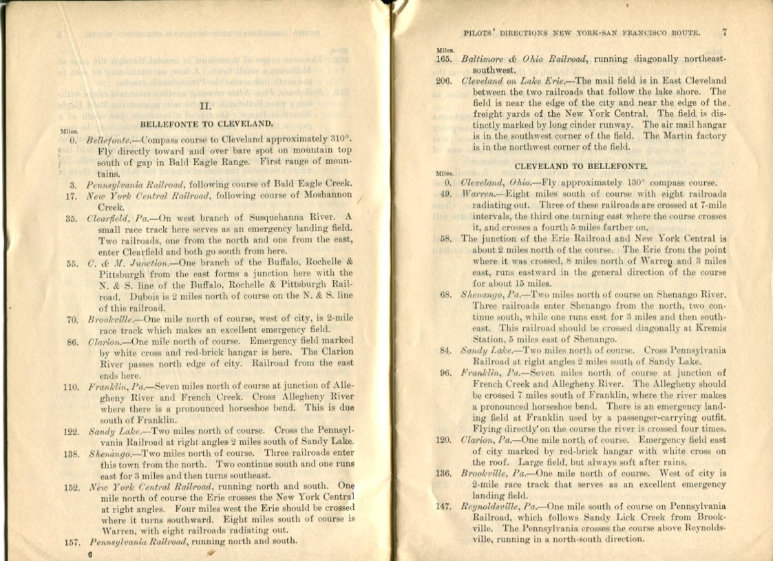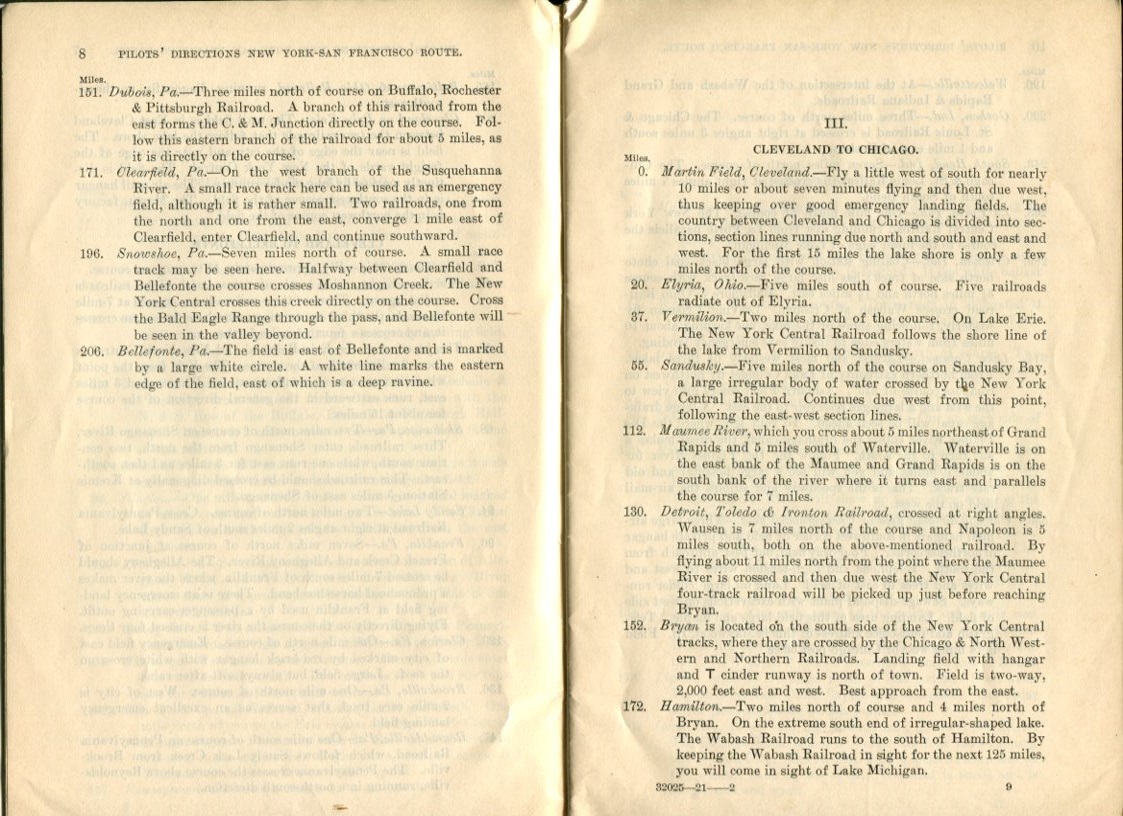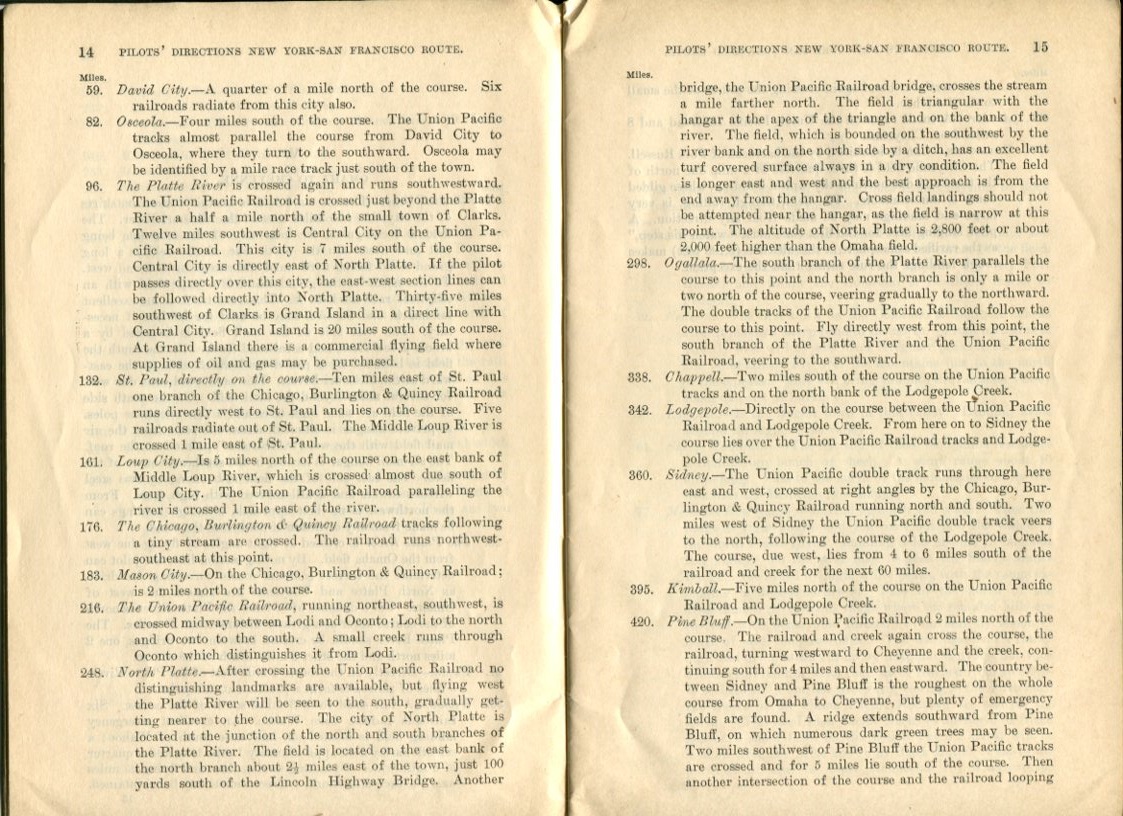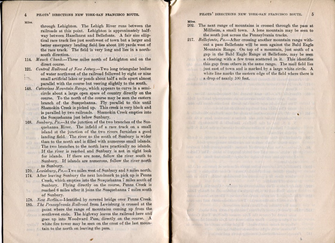 Pilot Directions: New York-San Francisco Route