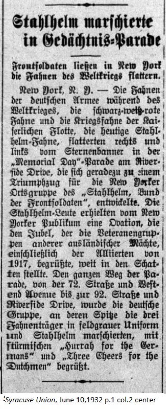 June 10, 1932 page 1 _____ Frontline Soldiers Wave World War Flags in New York |