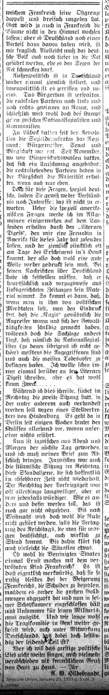 January 20, 1933 page 3 _____ Which speaks of many interesting things _____ Among other things, Mr. Hildrebrandt writes: Lübeck, December 7, 1932