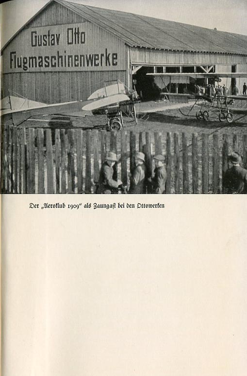 Sign on the side of the building reads Gustav Otto Airplane Factory |