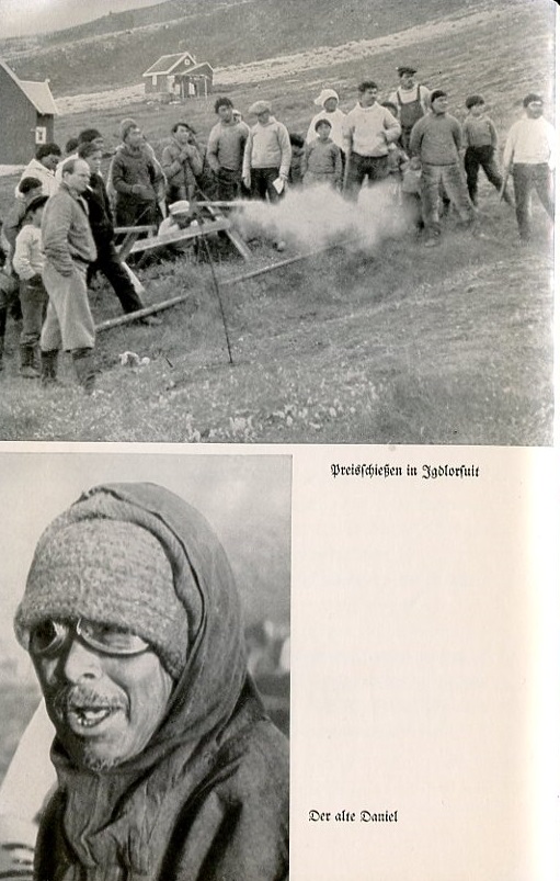 Caption under top photograph reads: Prize Shooting in Igdlorsiut Caption next to bottom photograph reads: Old Daniel |