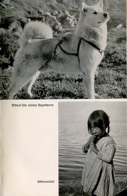 Caption under top photograph reads: Nikinak hears my Argus Engine Caption next to bottom photograph reads: Eskimo Girl |