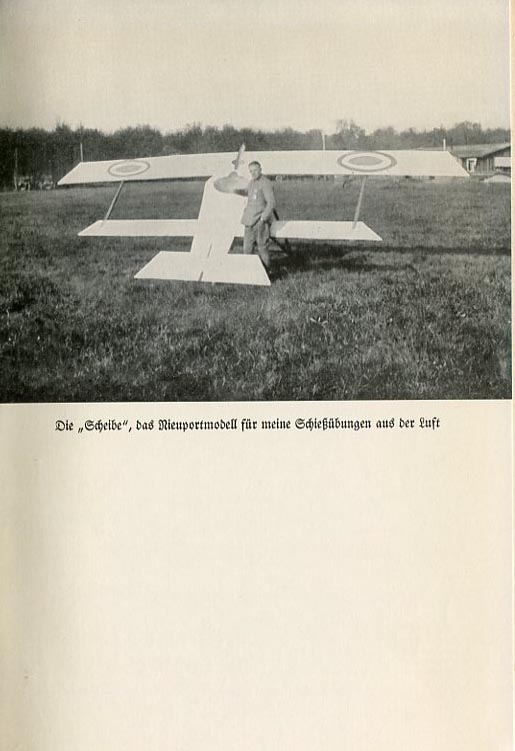 Caption under photograph reads: The "Scheibe", the Nieuport modell for my final practice sessions in the air |