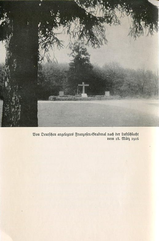 Caption under photograph reads : A French grave marker constructed by the Germans after the air battle of March 18, 1916 |