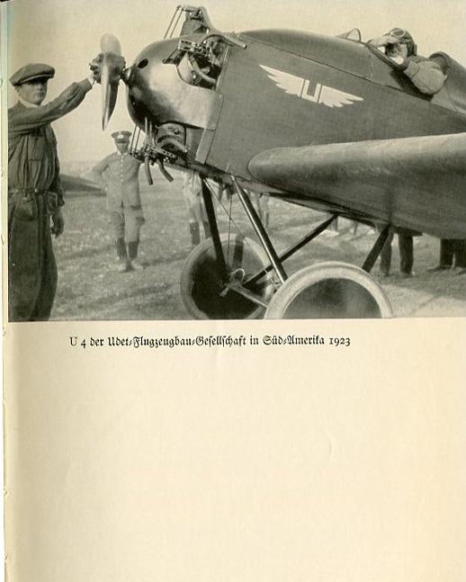 Caption under photograph reads: Model U4 by the Udet Airplane Manufacturing company in south America, 1923. |
