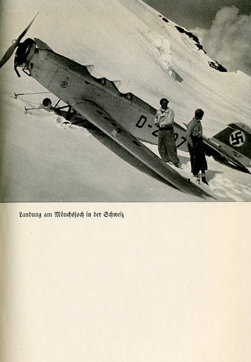 Caption under photograph reads: Landing at Mönchjoch in Switzerland |