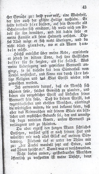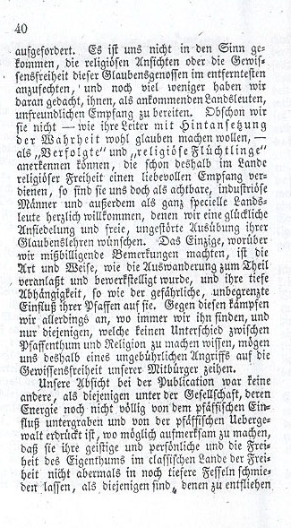 After the last article I had occasion to speak with one of the Stephanists, who visited me as a fellow countryman and envoy. I greeted him in friendship but after scarcely 10 minutes of dialog he felt compelled to flee from me as quickly as possible since he believed I was possessed by the devil.