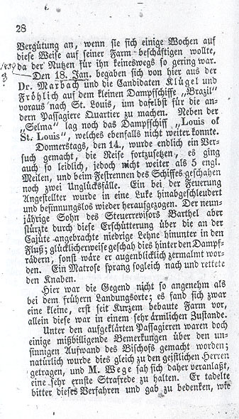 Pastor Stephan and his fellow travelers purchased gourmet items such as wine, oysters and other delicacies. Fine furniture had been purchased for the reverend bishop so his rooms in St. Louis would be elegantly decorated. In short, no amount of money was spared to satisfy the wishes of this idolized man.